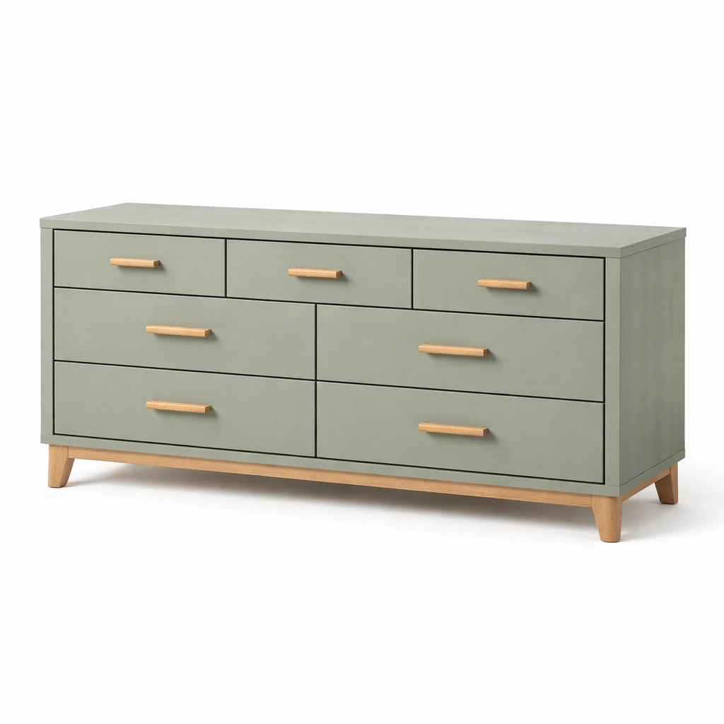 Cassettiera in legno con cassetti verde 140x45x75 cm