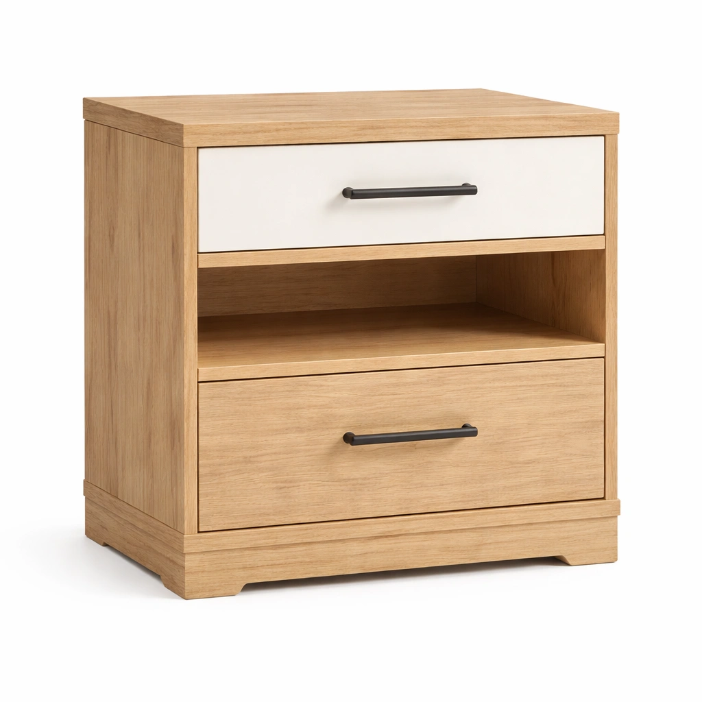 Comodino in legno mdf bianco e rovere con cassetti