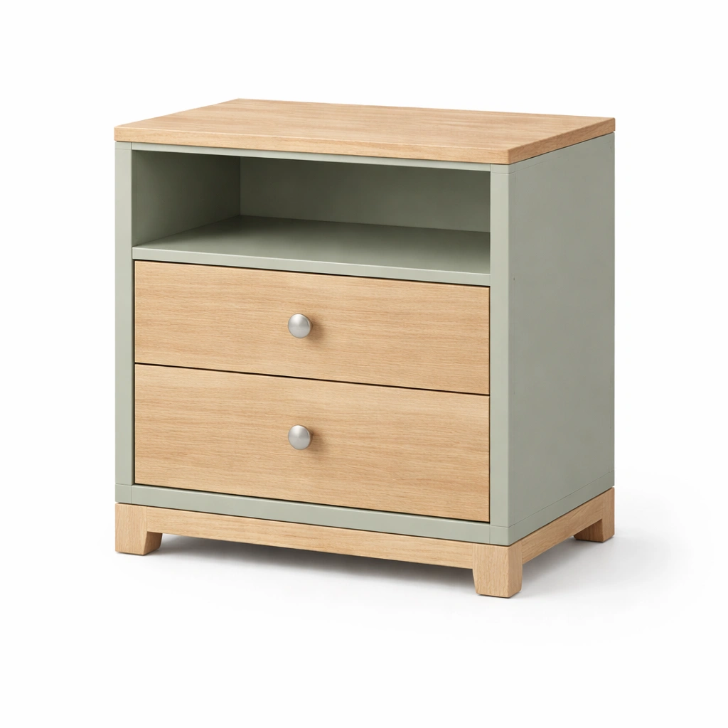 Comodino in legno e mdf verde con cassetti