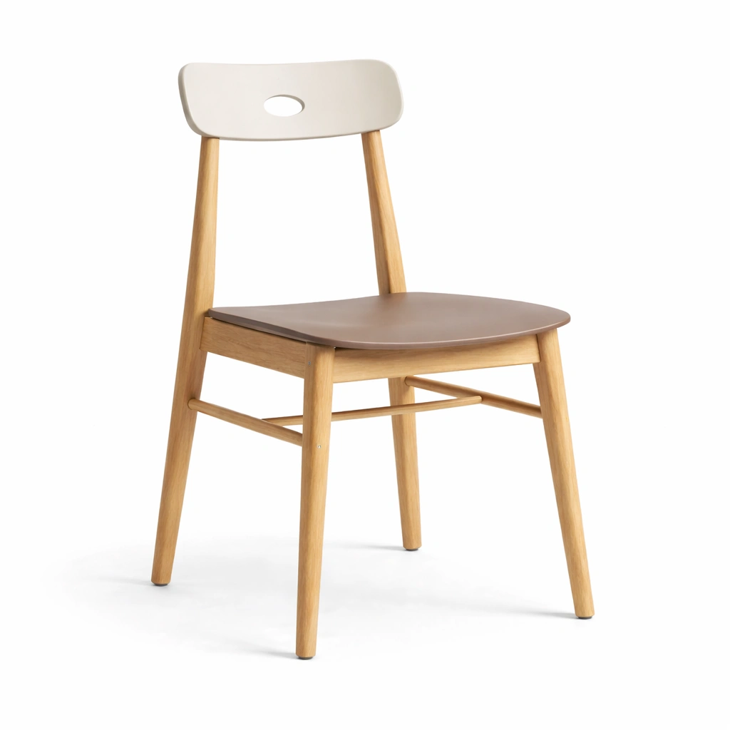 Sedia da pranzo in legno con sedile e schienale in plastica