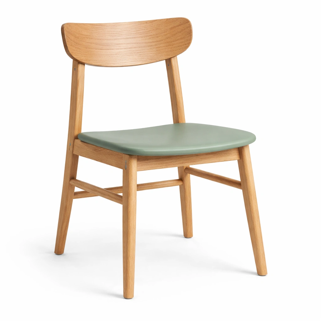 Sedia da pranzo in legno di rovere con seduta in plastica verde