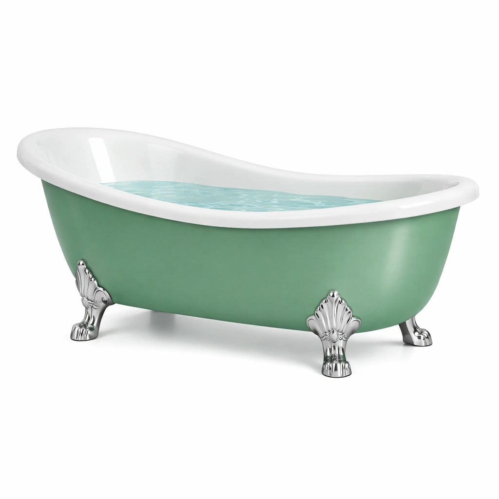Vasca da bagno freestanding in acrilico verde con piedini cromati
